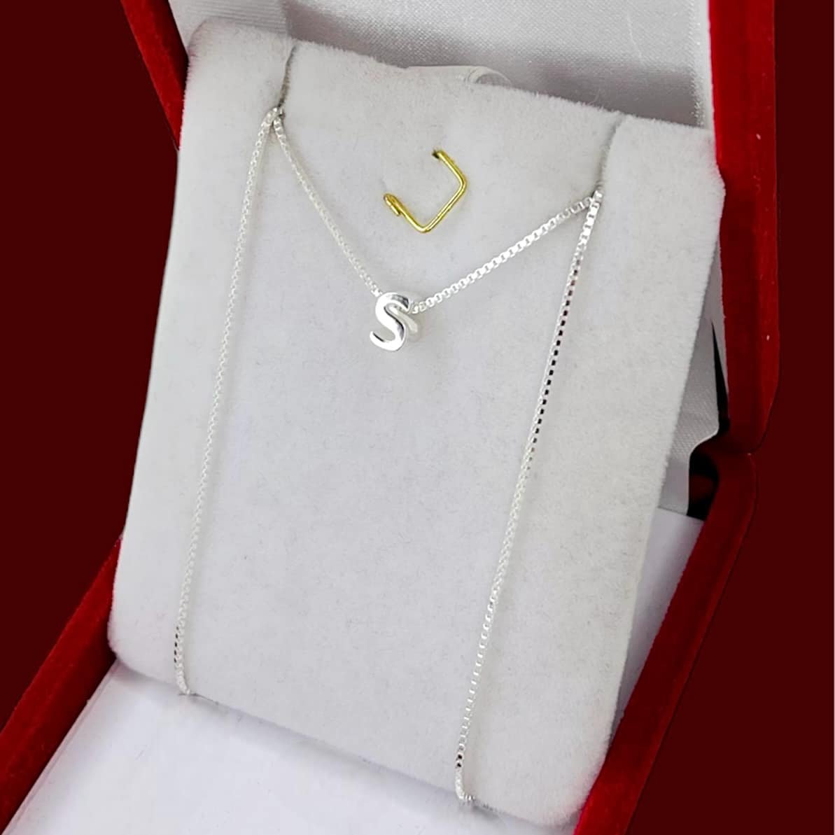Conjunto cadena veneziana cuadrada con dije inicial S de Plata Italiana