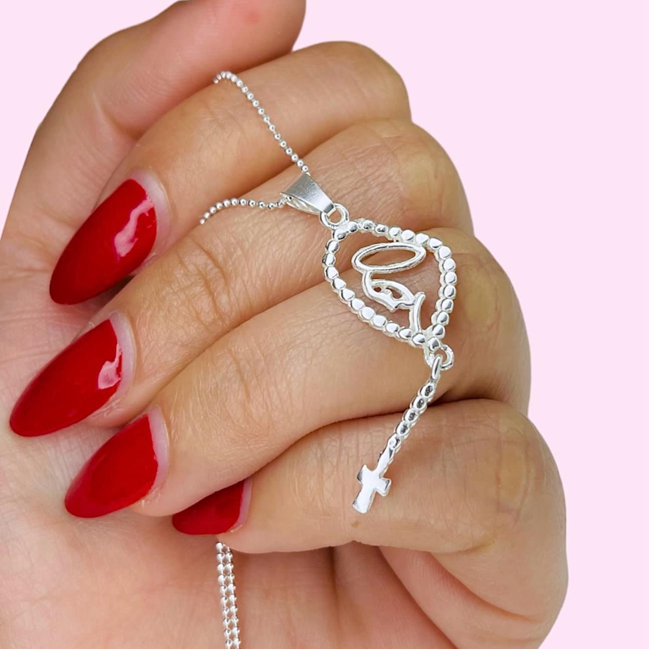 Conjunto cadena bolitas y dije rosario movil de Plata 925
