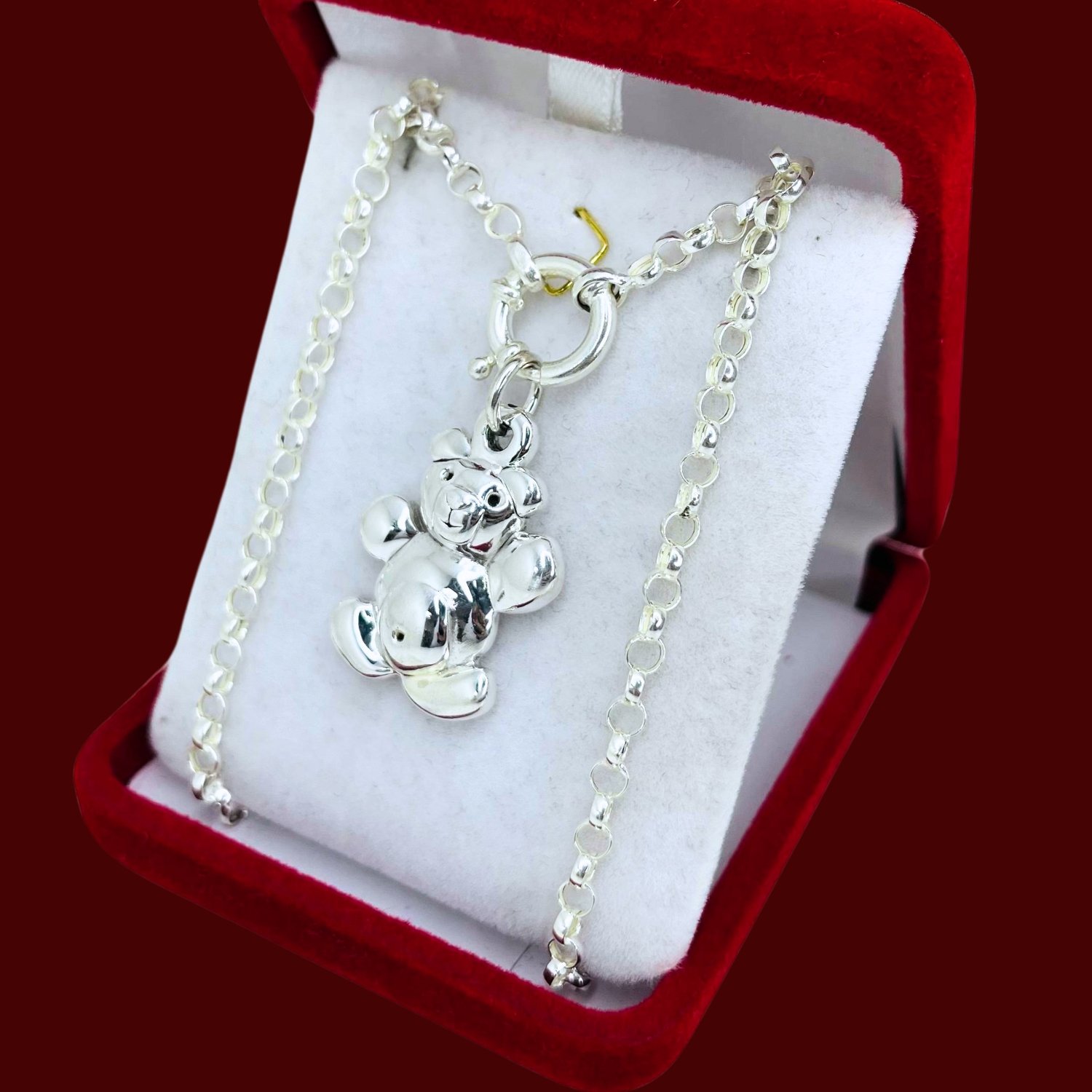 Conjunto cadena rolo N0000 con dije Osito Melosito Plata 925
