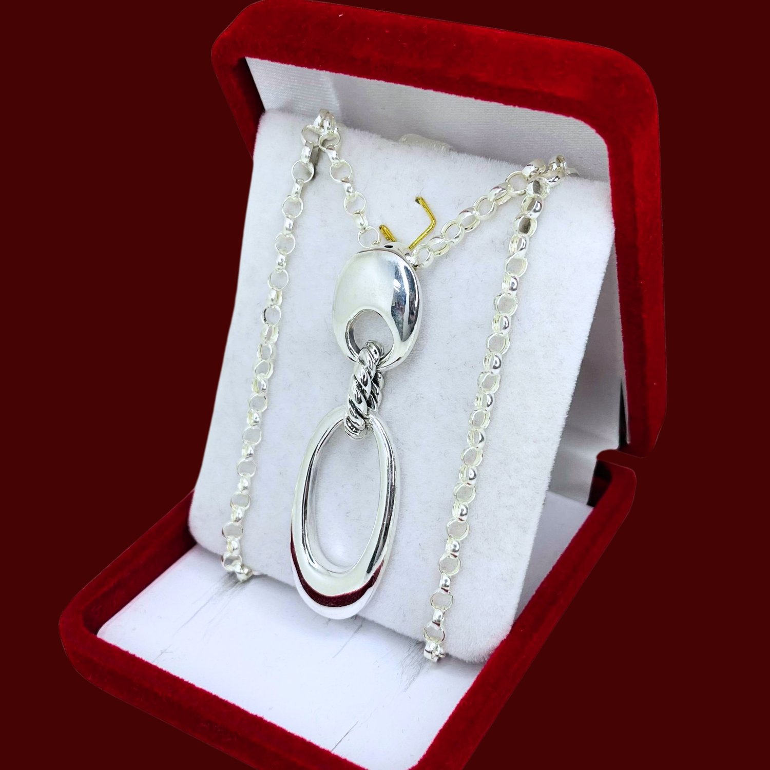 Conjunto cadena rolo N0000 con Dije inflado ovalos colgante Plata 925