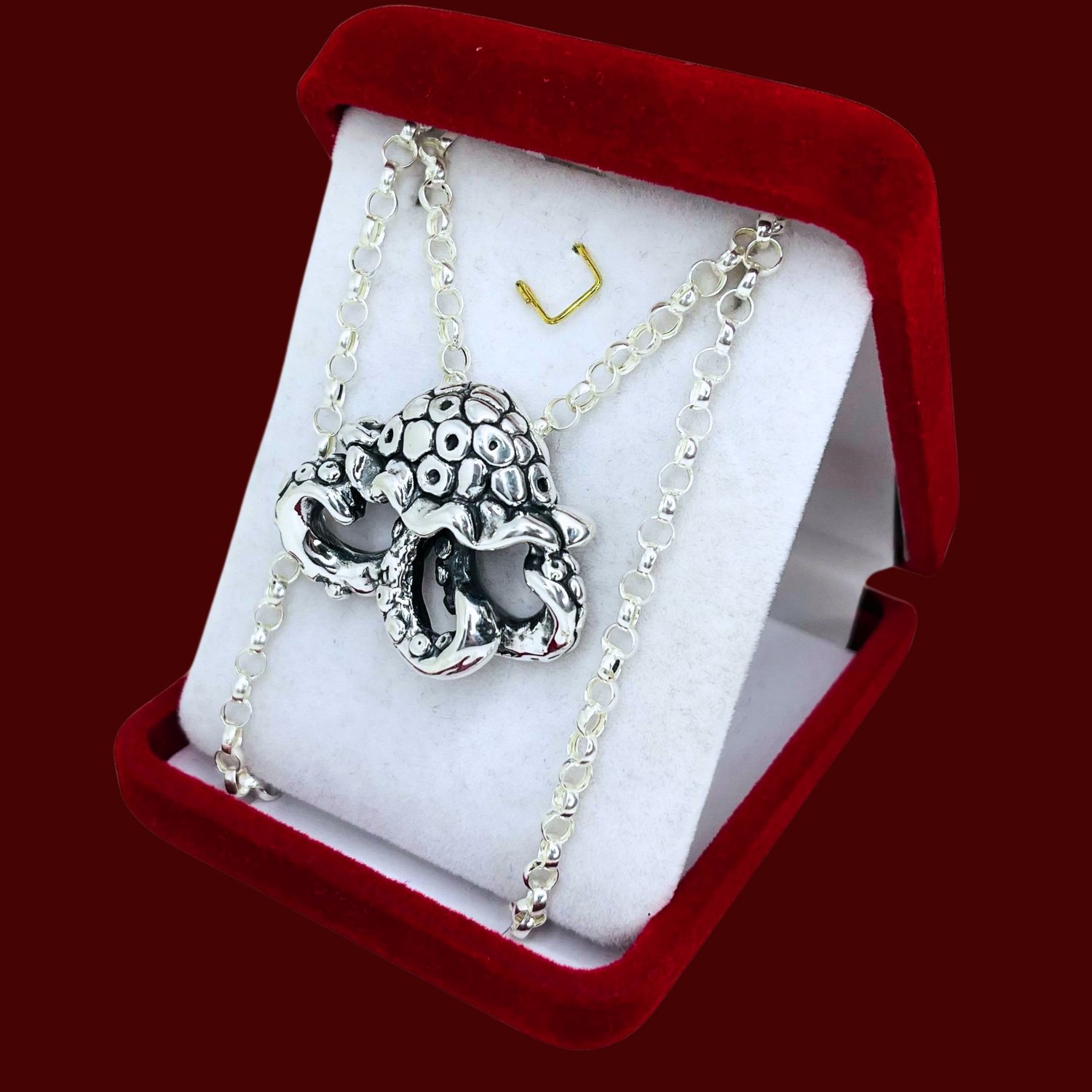 Conjunto cadena rolo N0000 con Dije inflado Pulpo altorelieve Plata 925