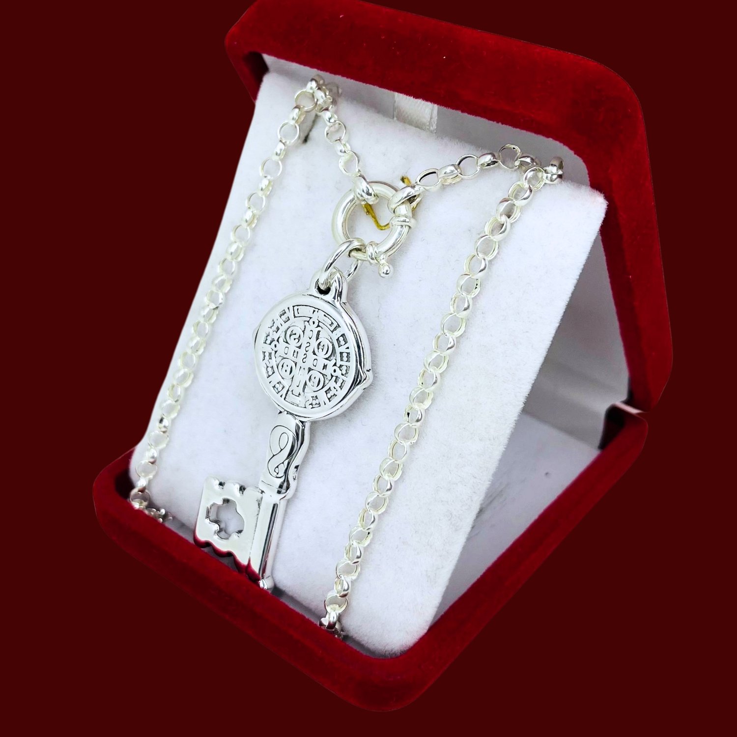 Conjunto cadena rolo N0000 con Dije llave san benito inflado Plata 925