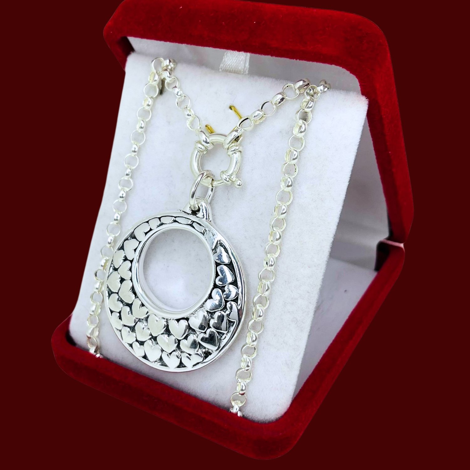 Conjunto cadena rolo N0000 con Dije inflado redondo con corazones Plata 925