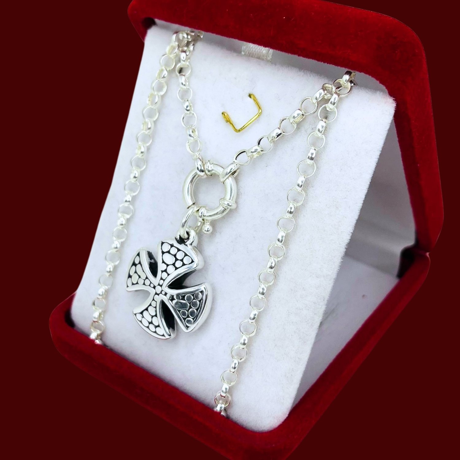 Conjunto cadena rolo N0000 con Dije inflado cruz cristobal colon Plata 925