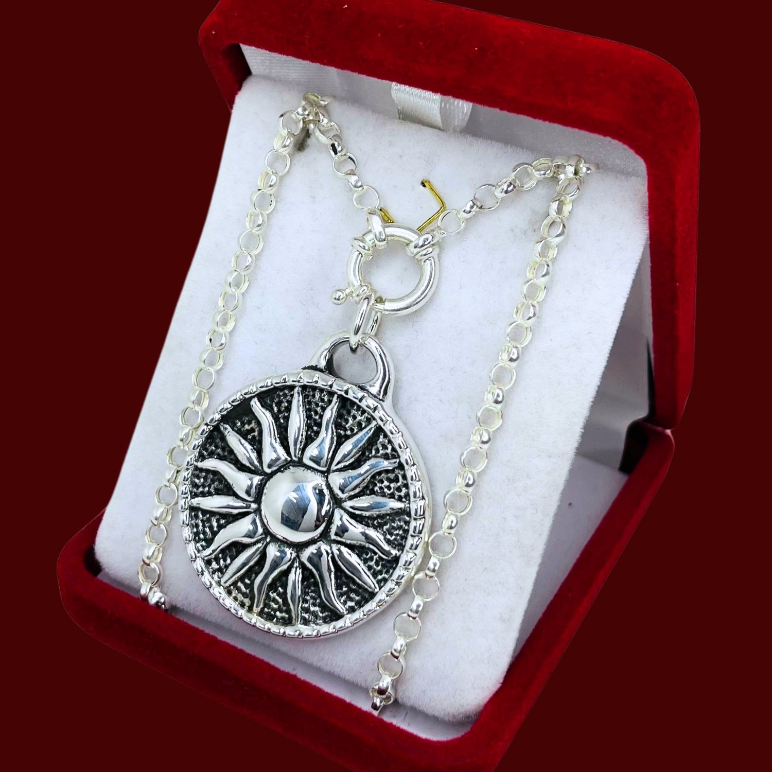 Conjunto cadena rolo N0000 con Dije inflado redondo Sol argentina de Plata 925