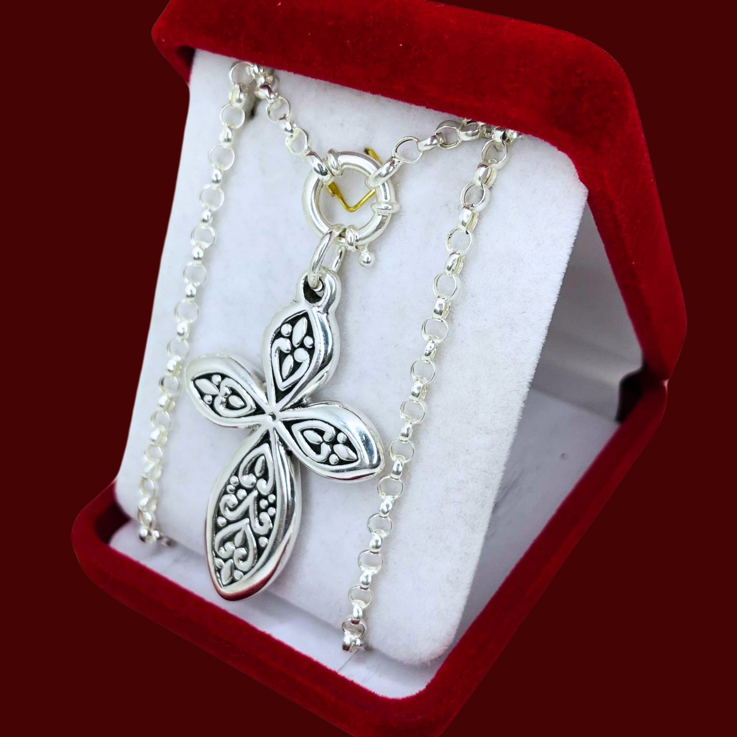 Conjunto cadena rolo N0000 con Dije inflado cruz arabesco Plata 925