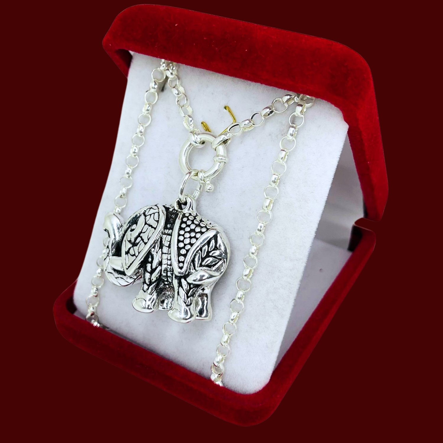 Conjunto cadena rolo N0000 con Dije inflado elefante Grande 3D Plata 925