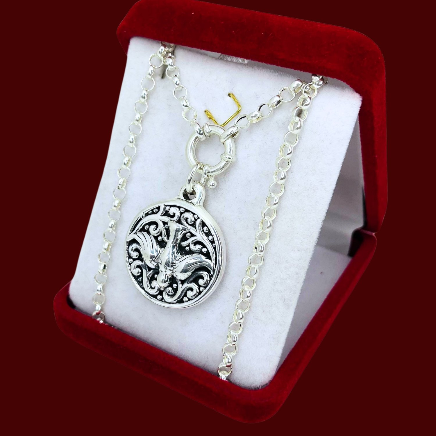 Conjunto cadena rolo N0000 con Dije inflado Espiritu santo Plata 925