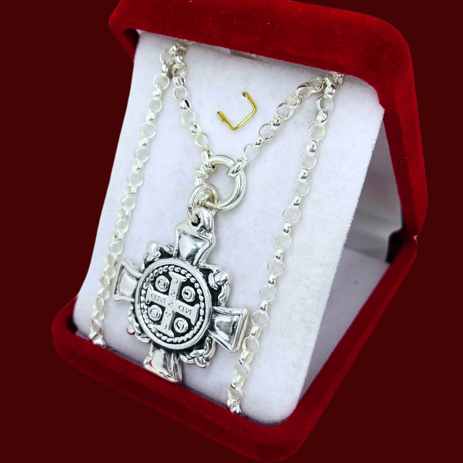Conjunto cadena rolo N0000 con Dije inflado San benito Cruz Plata 925