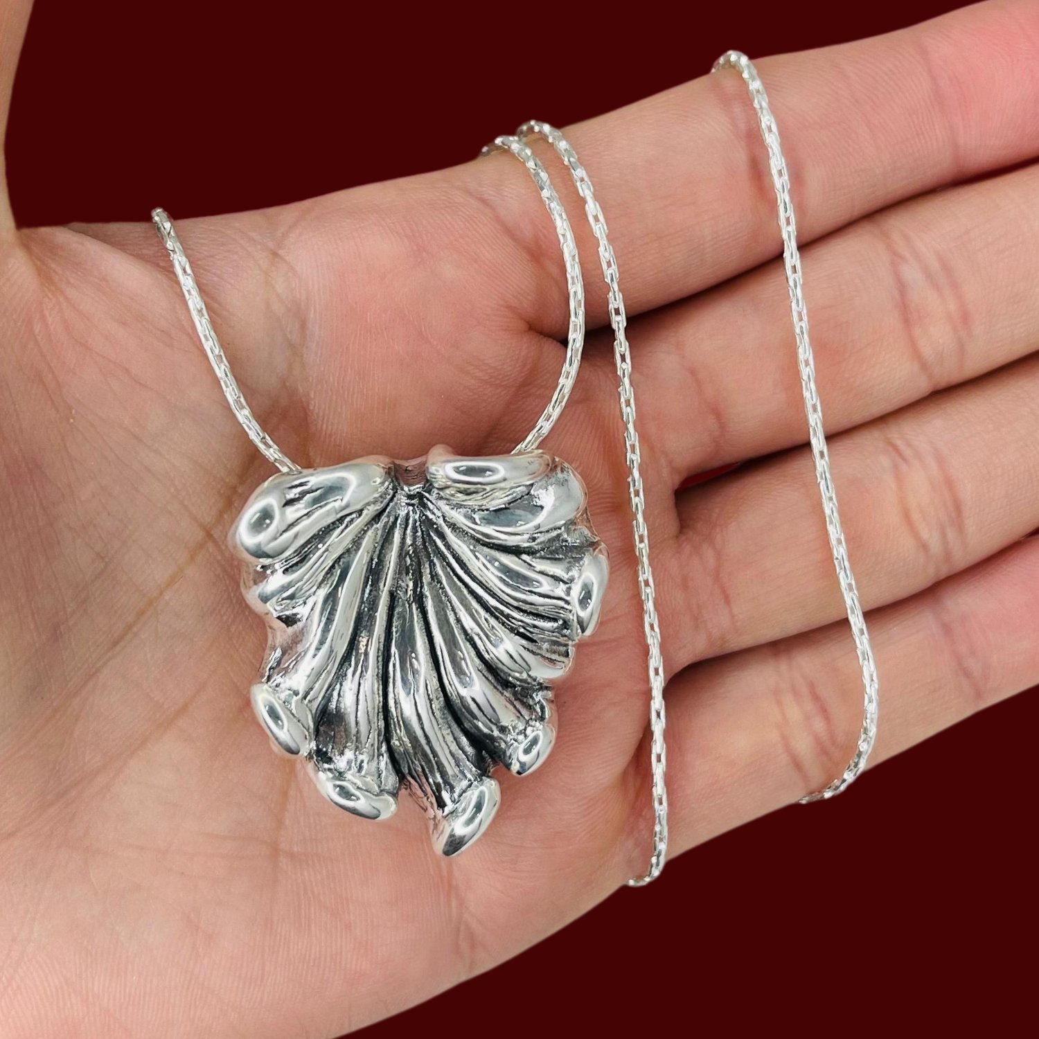 Conjunto cadena forcet redondo 60 con Dije Inflado Hoja botanica Plata 925