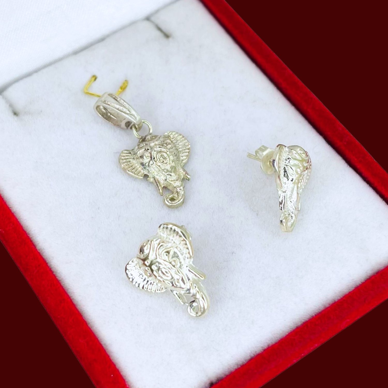 Conjunto dije y aros elefante hindu Plata 925