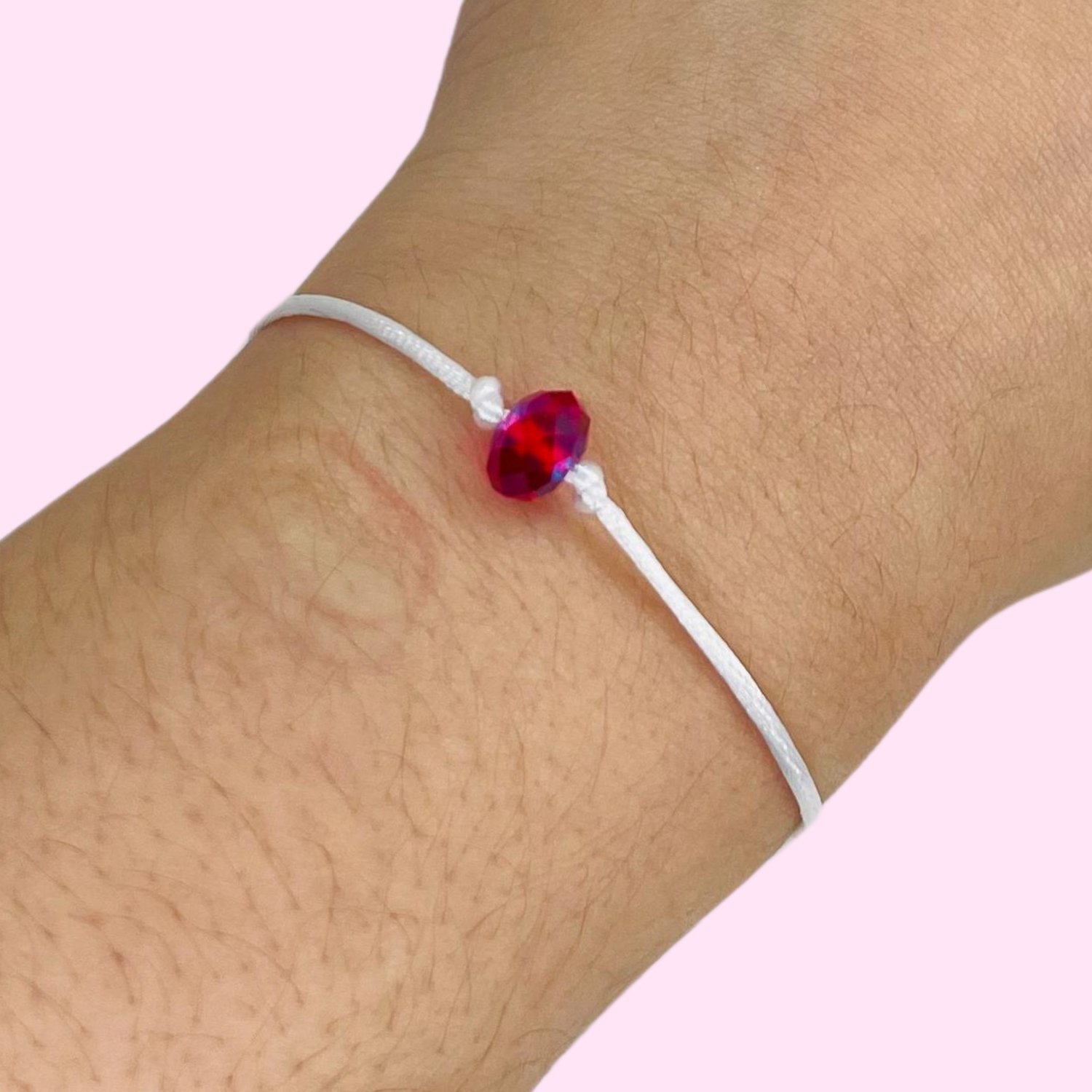 Pulsera hilo blanco de la proteccion con dije dona cristal rojo