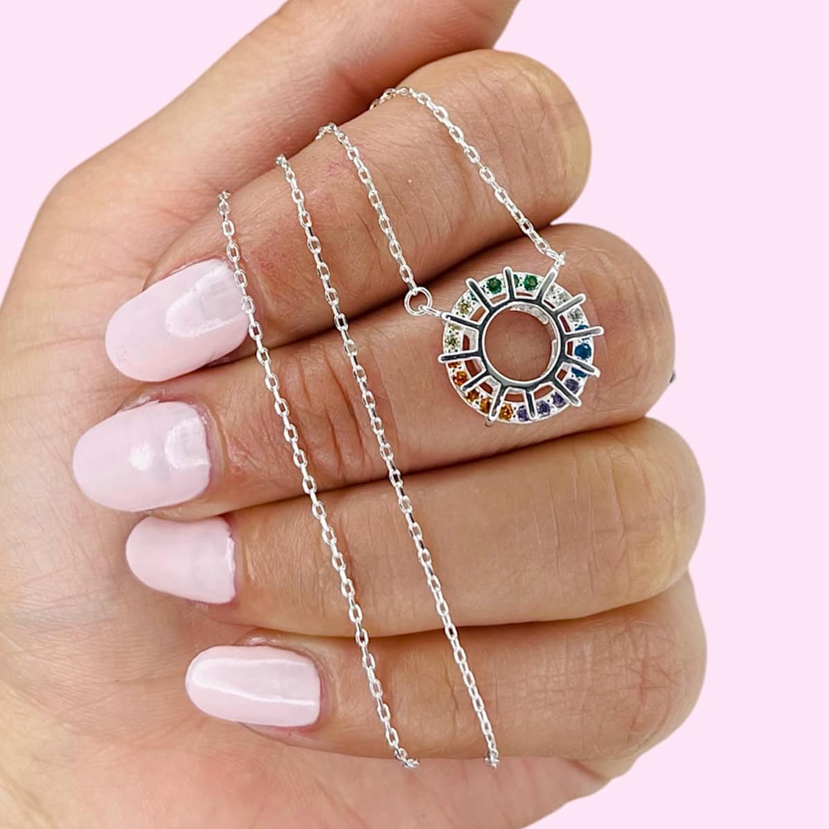 Conjunto cadena rolito y dije 4 estaciones (Movil) cubic multicolor Plata 925