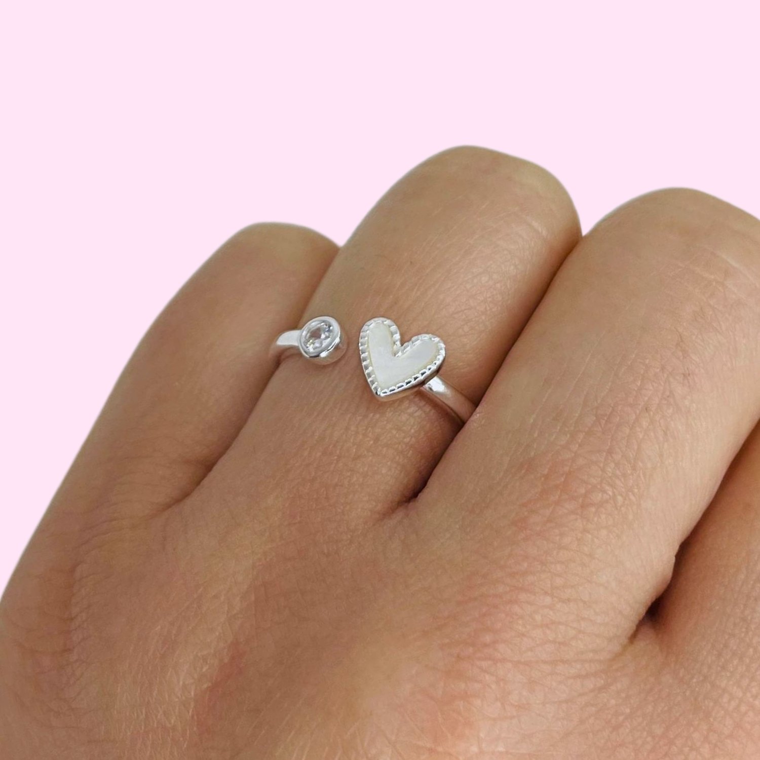 Artículo: AP 573Anillo corazon nacar y cubic blanco
