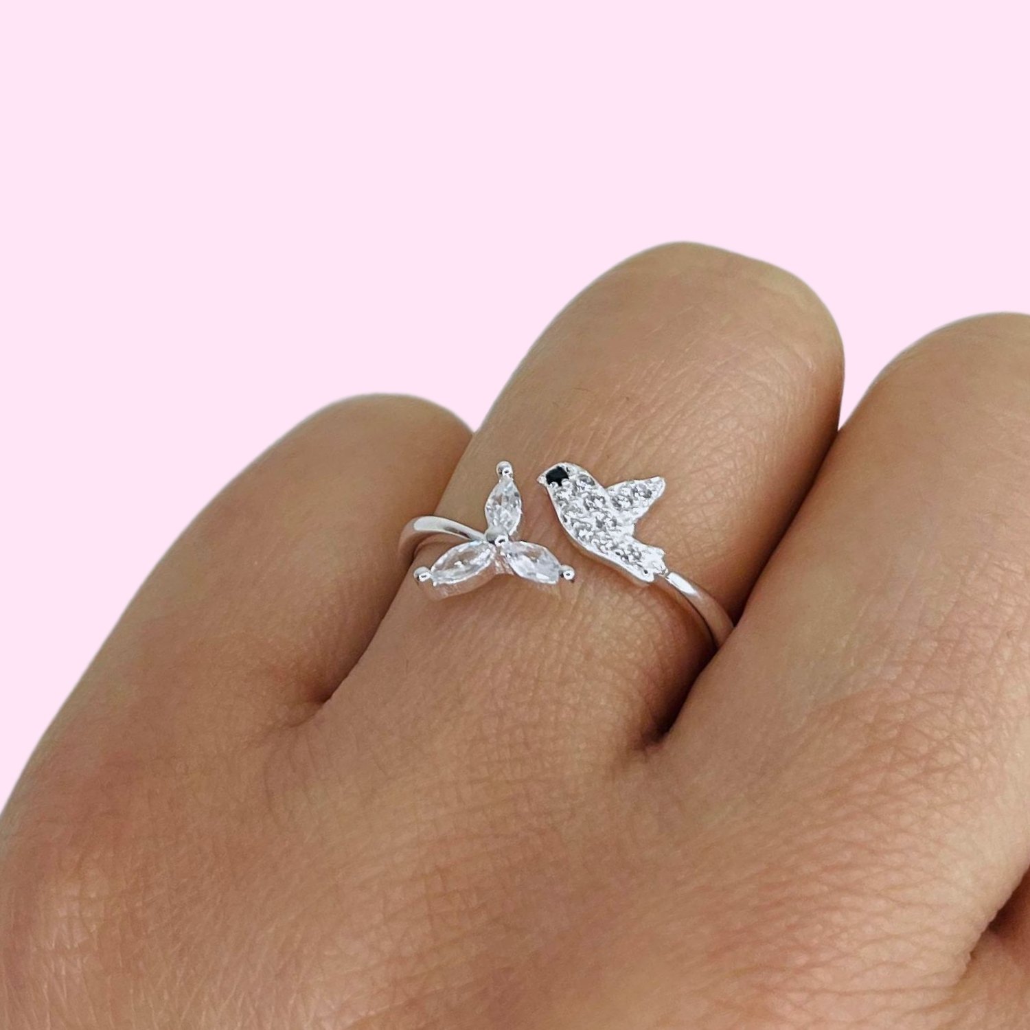Artículo: AP 575Anillo colibri y flor cubic blanco