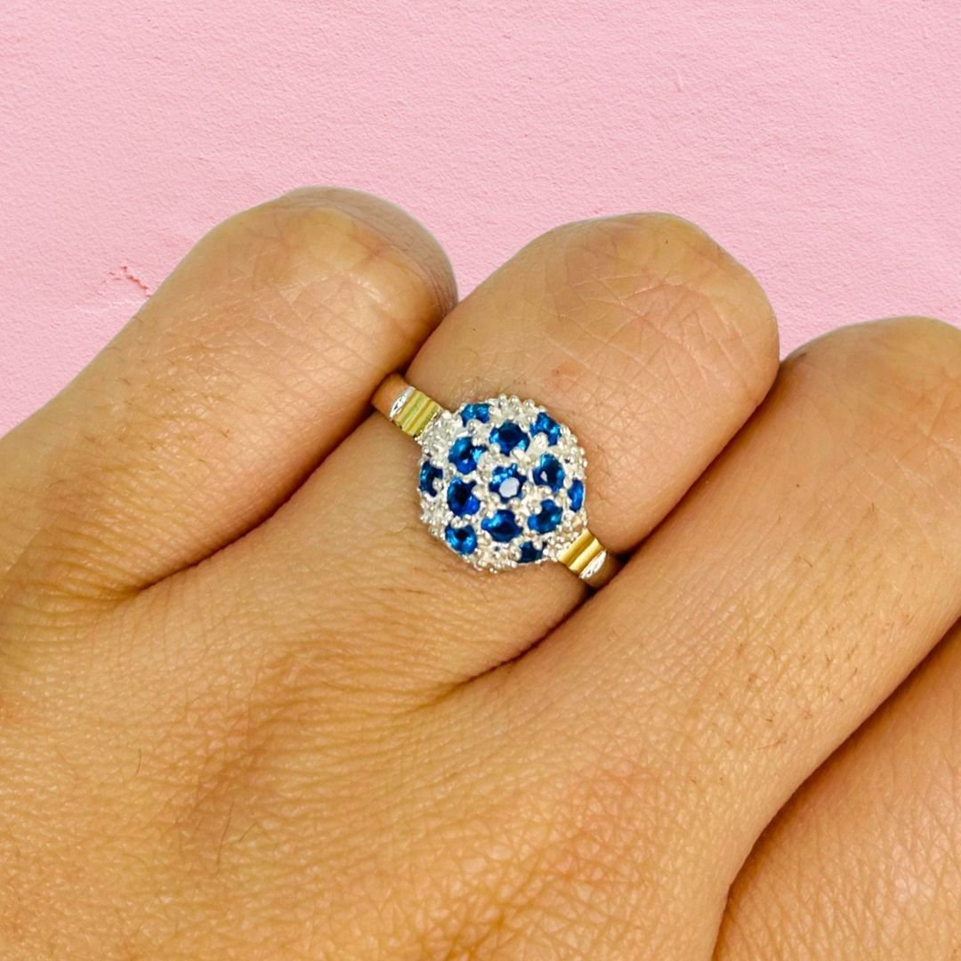 Anillo Frutilla mediano ZAFIRO CLARO de Plata y Oro