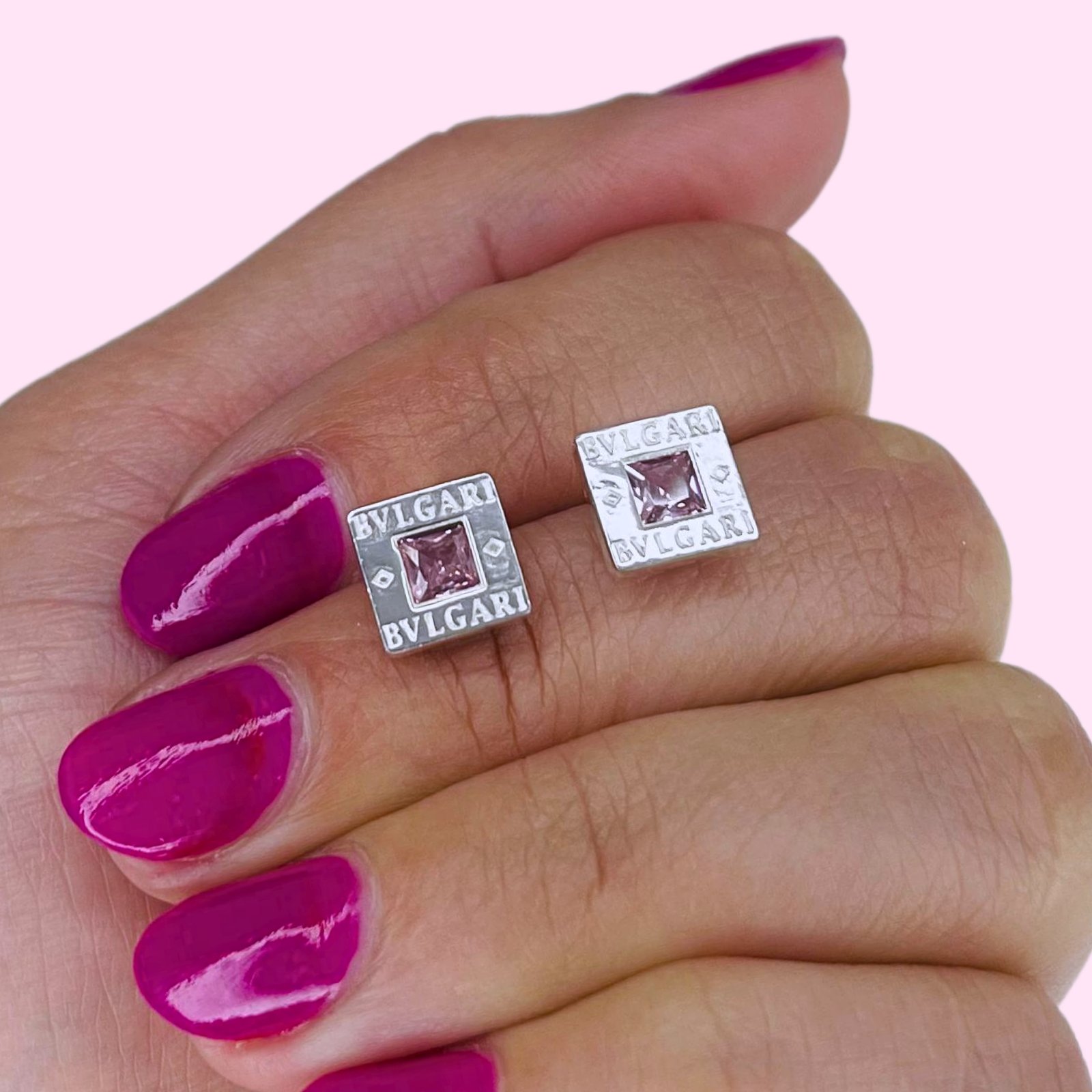 AROS BVLGARI CUADRADO MEDIANO ENCAMISADO CUBIC ROSA PLATA 925