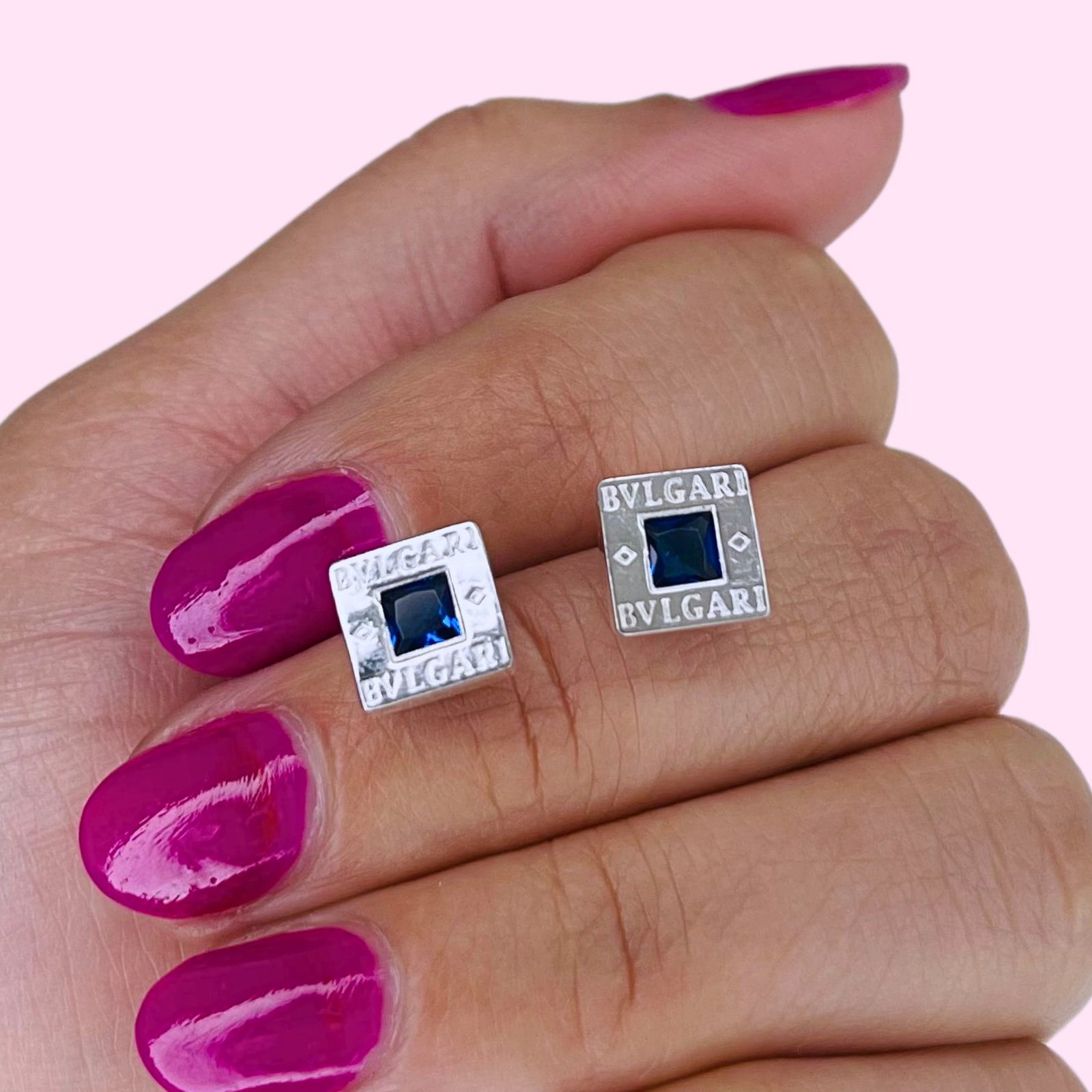 AROS BVLGARI CUADRADO MEDIANO ENCAMISADO CUBIC AZUL PLATA 925