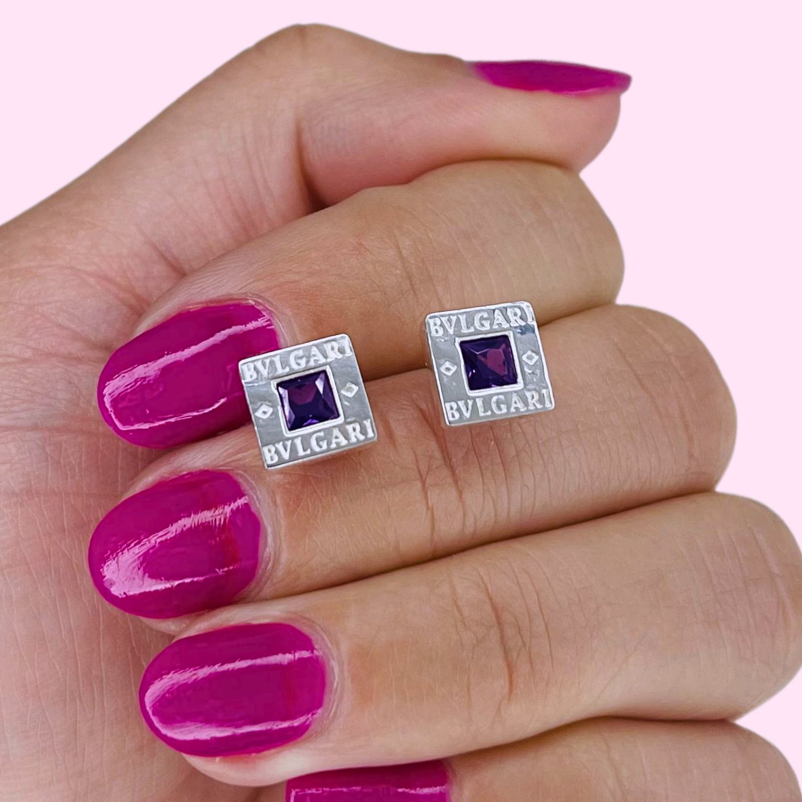 AROS BVLGARI CUADRADO MEDIANO ENCAMISADO CUBIC VIOLETA PLATA 925