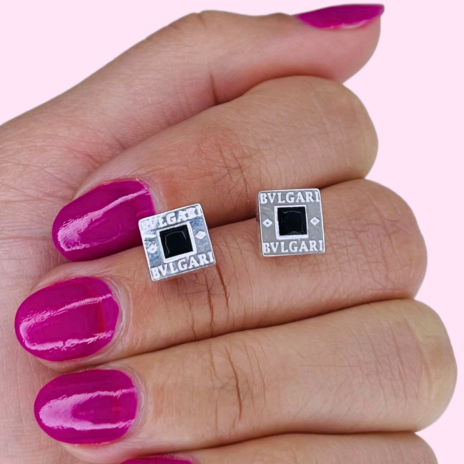 AROS BVLGARI CUADRADO MEDIANO ENCAMISADO CUBIC NEGRO PLATA 925