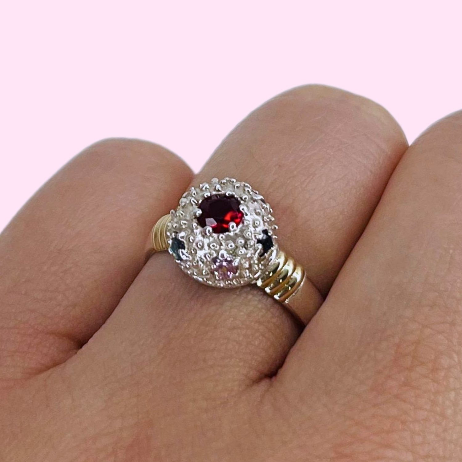 Anillo Erizo Grande Multicolor de Plata y Oro