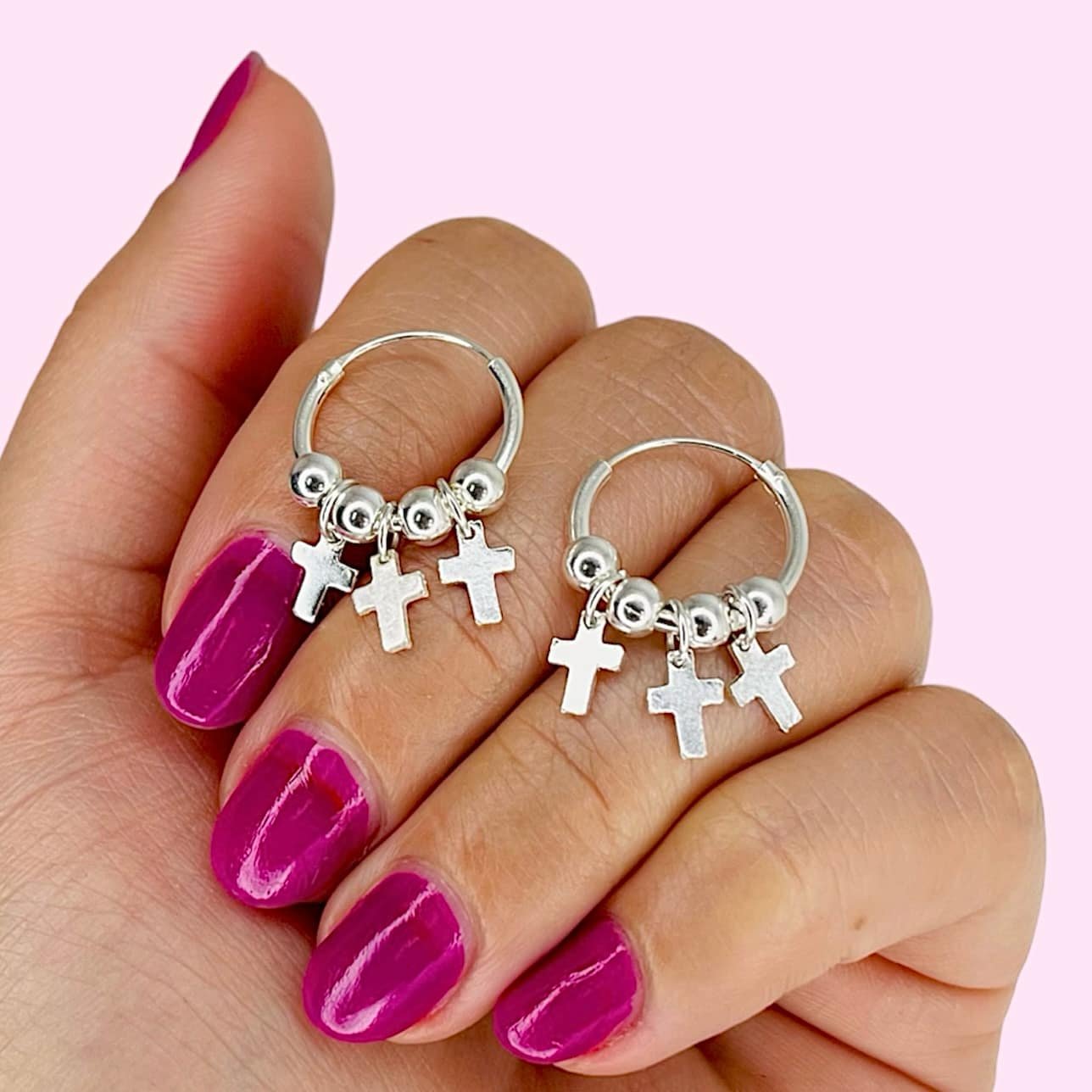 Aros cubano cruces y bolitas Plata 925