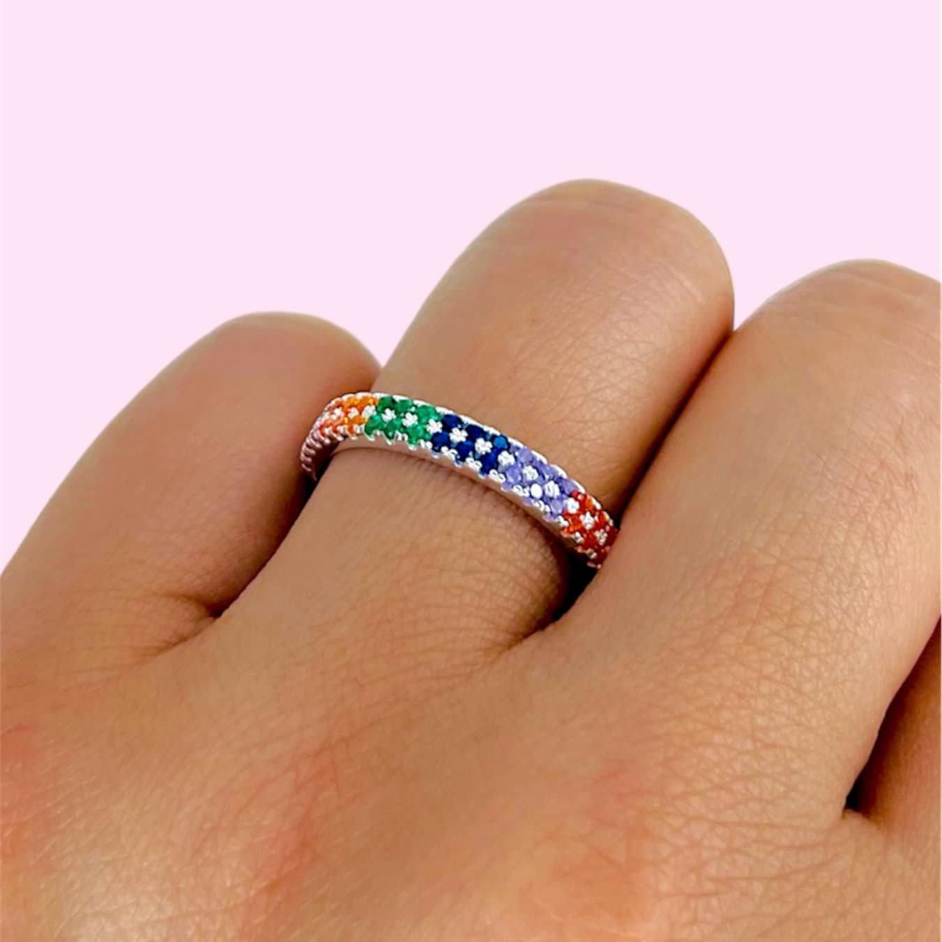 Anillo sin fin cubic micropave multicolor de Plata Italiana
