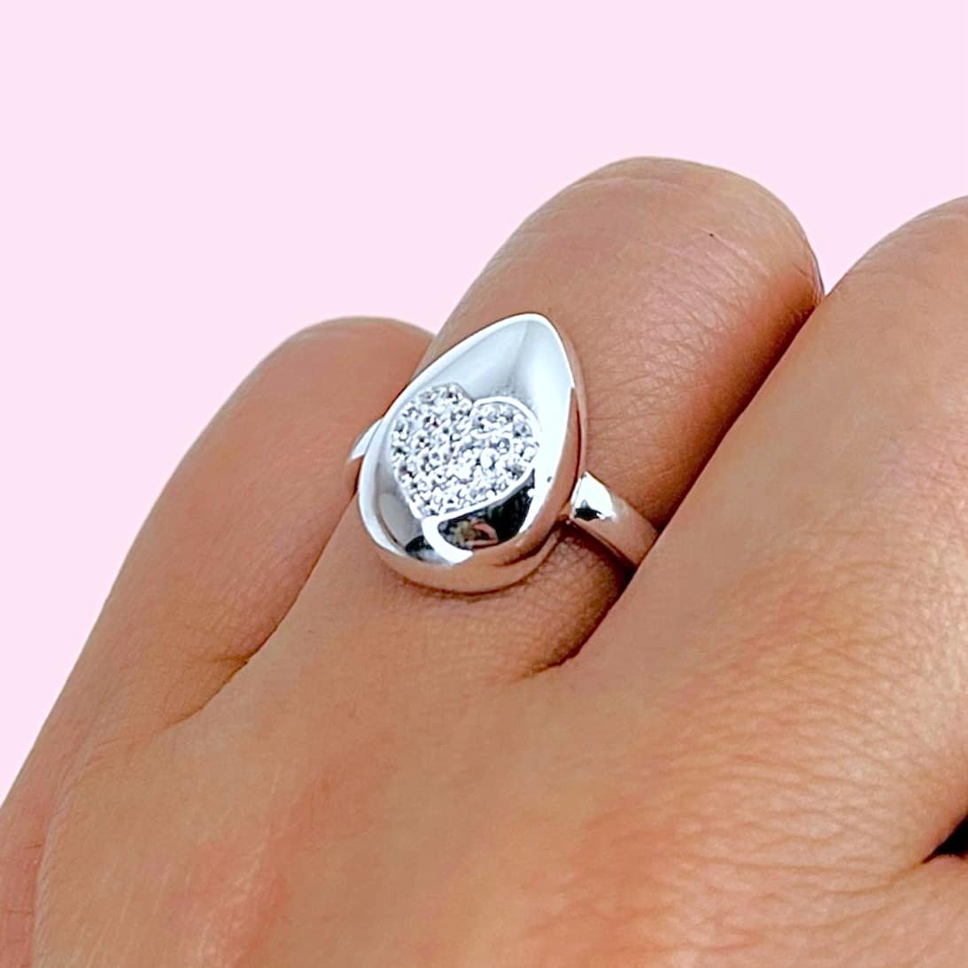Anillo Gota chunky cubic blanco micropave de Plata Italiana