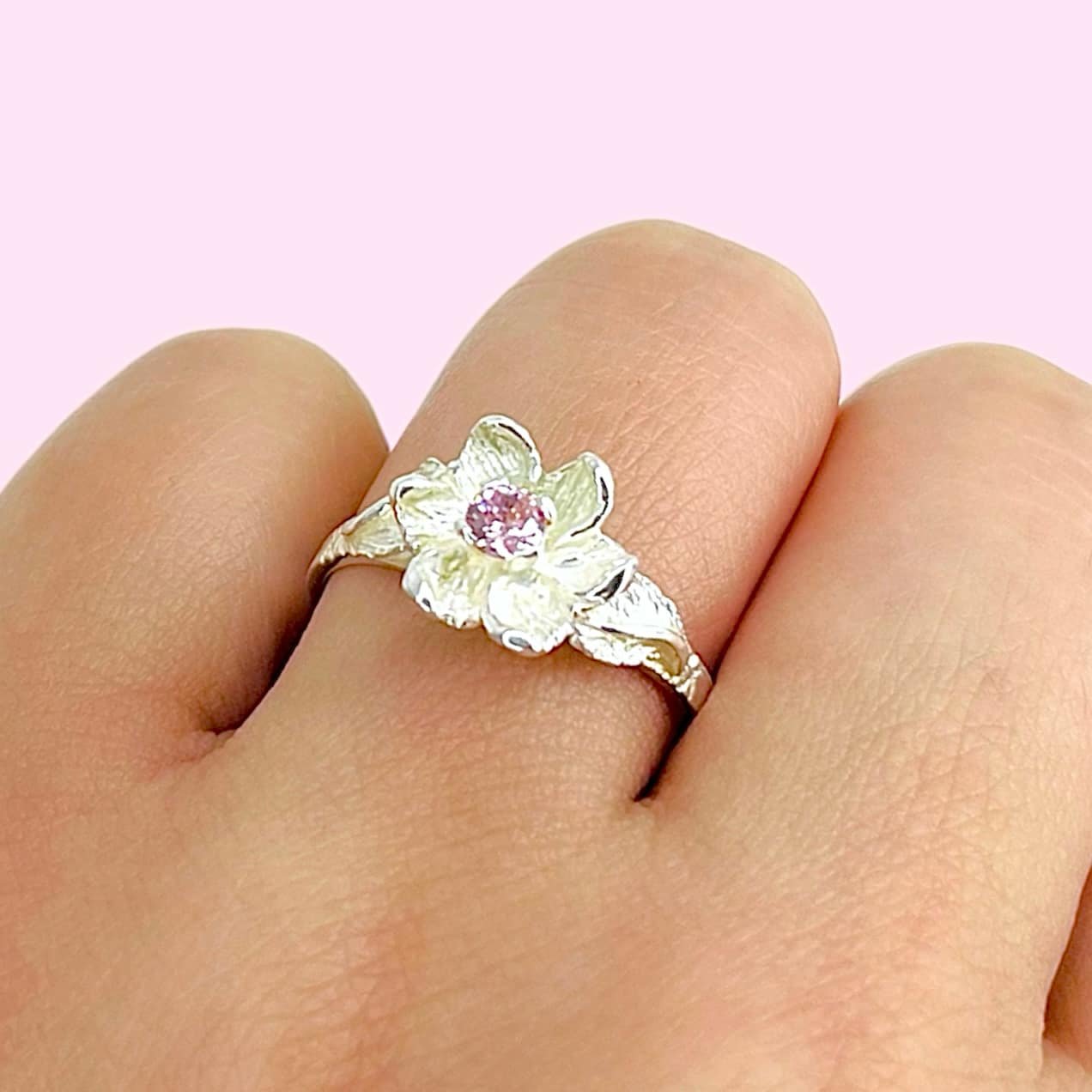 Anillo Flor primaveral cubic Rosa de Plata 925