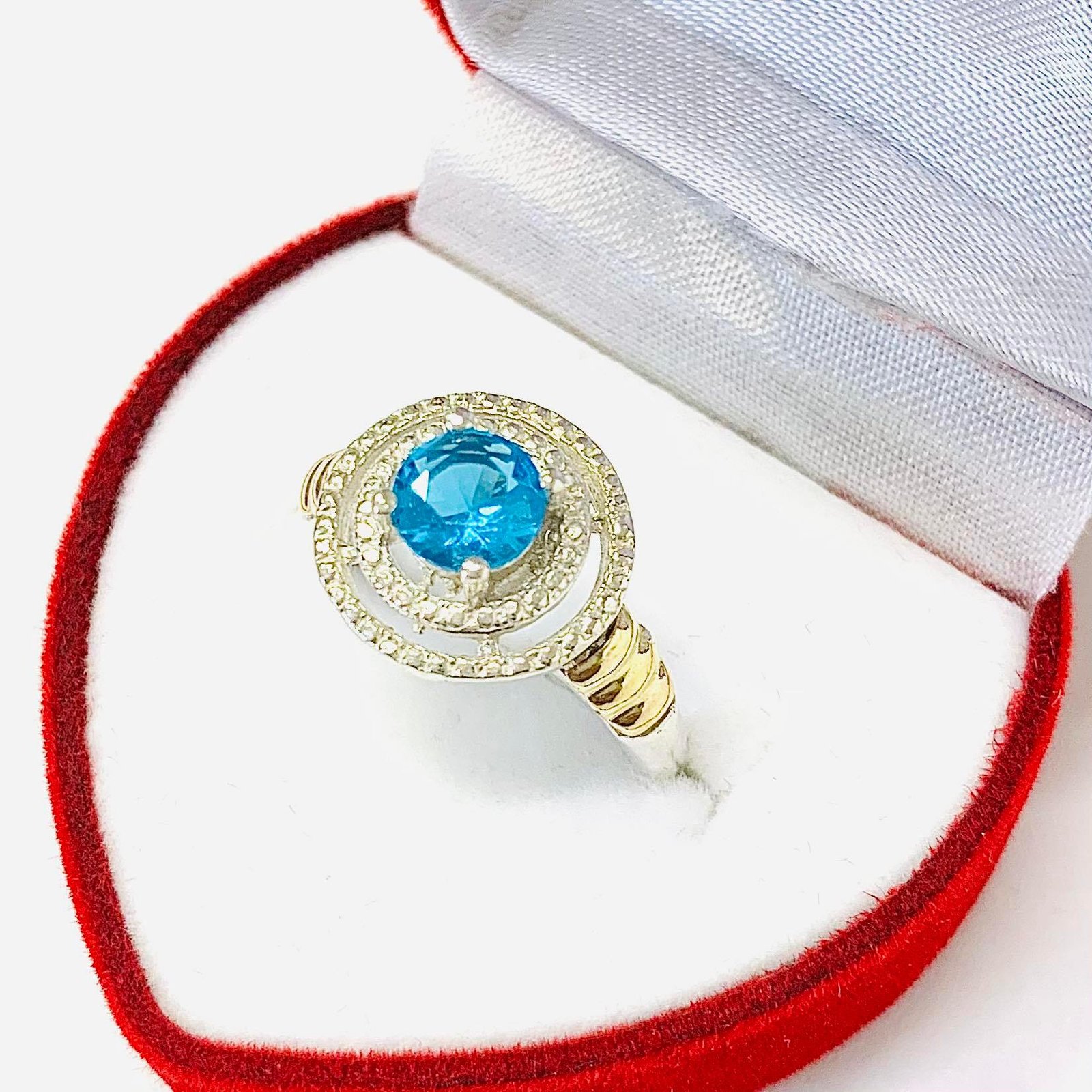 Anillo Coliseo con cubic agua de Plata y Oro