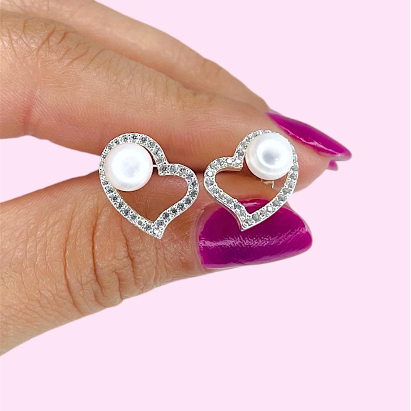 Aros Corazon perla y cubic blanco micropave de Plata 925