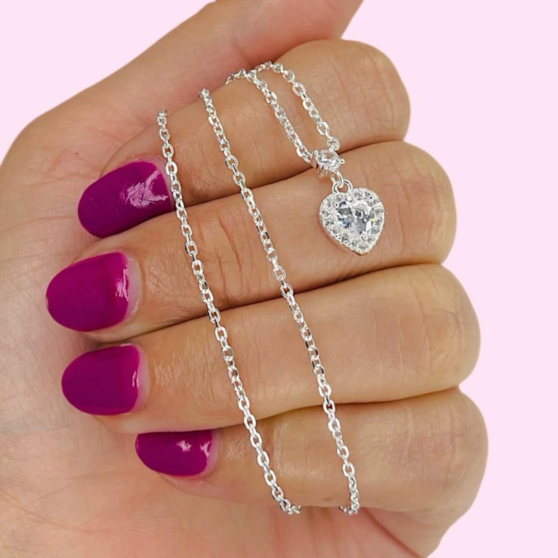 Conjunto cadena rolito dije corazon de compromiso cubic blanco Plata 925