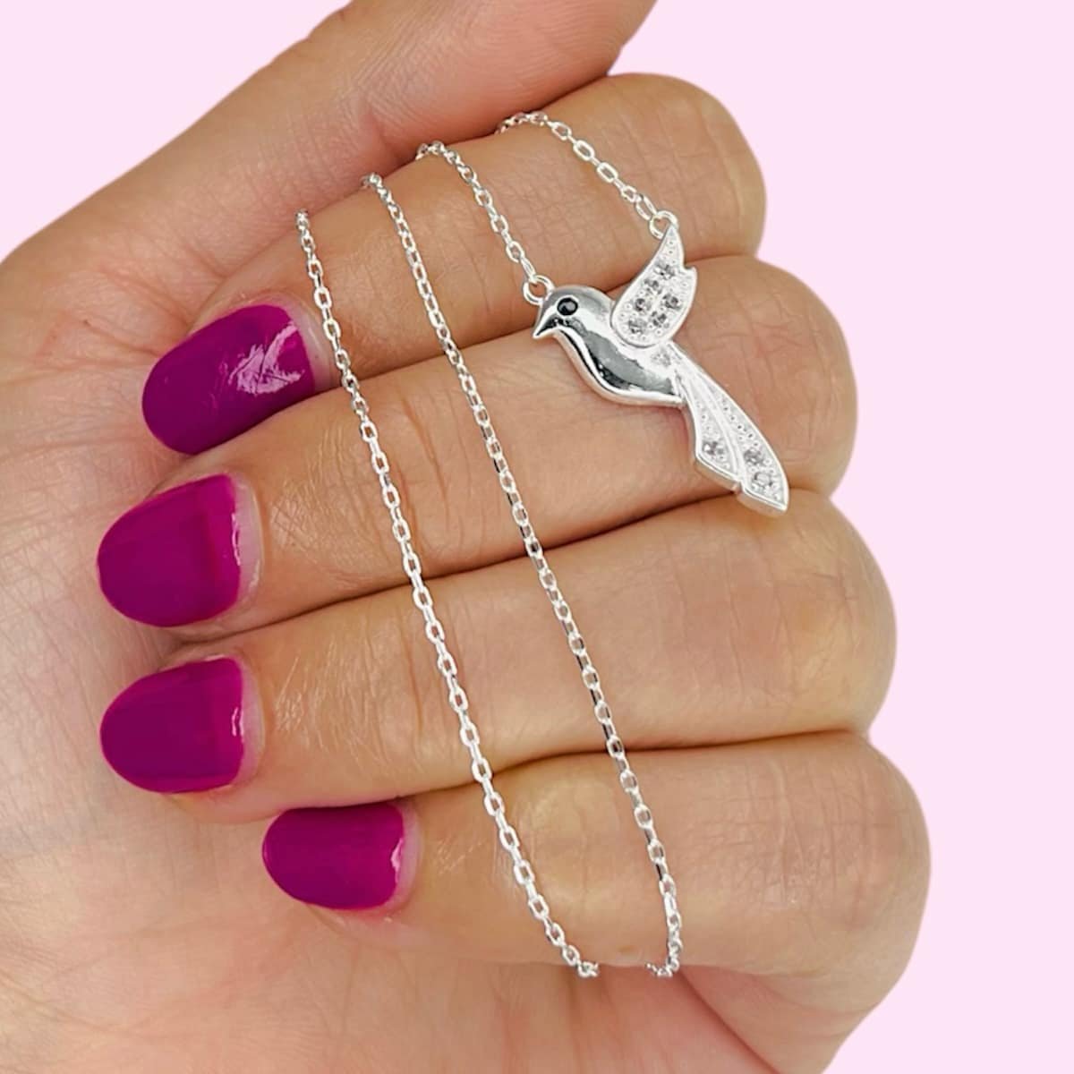 Conjunto cadena rolito dije colibri bebe Plata 925