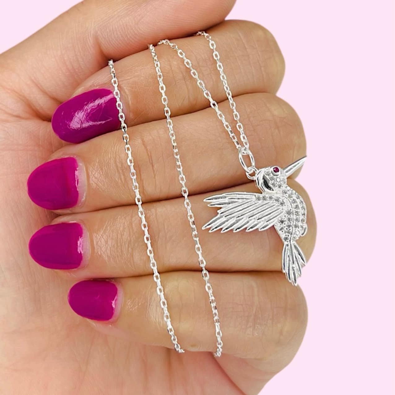 Conjunto cadena rolito dije colibri cubic blanco y rojo Plata 925