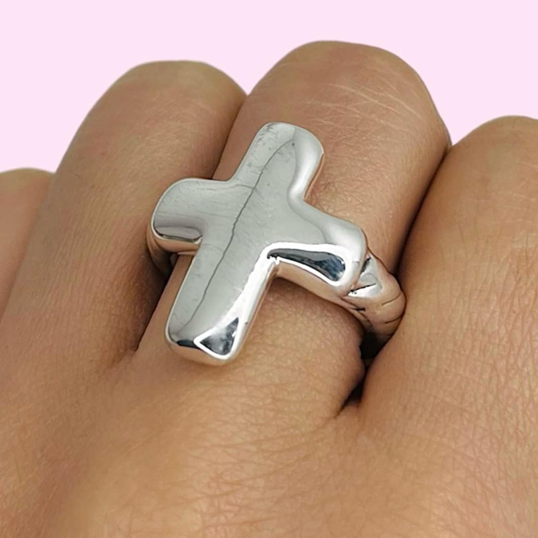 Anillo inflado cruz lisa Plata 925
