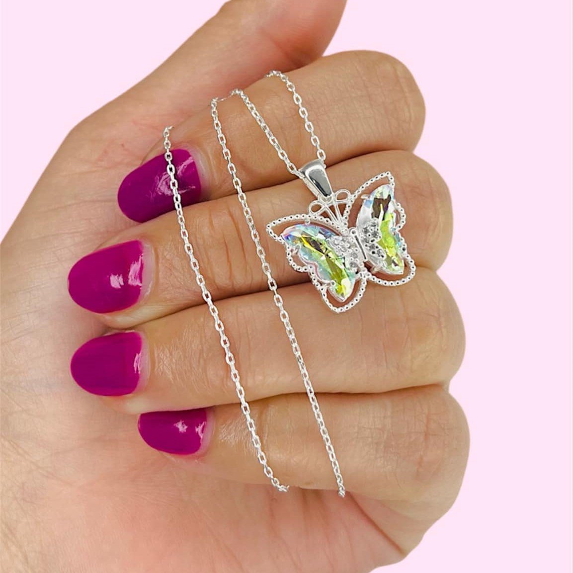 Conjunto cadena rolito dije mariposa aurora Plata 925