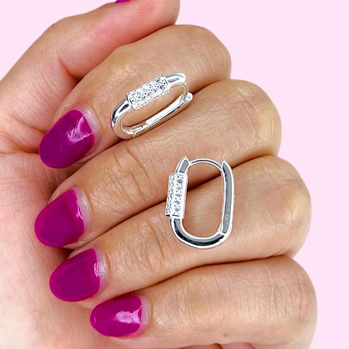 Argollas Huggies cilindro cubic blanco de Plata 925