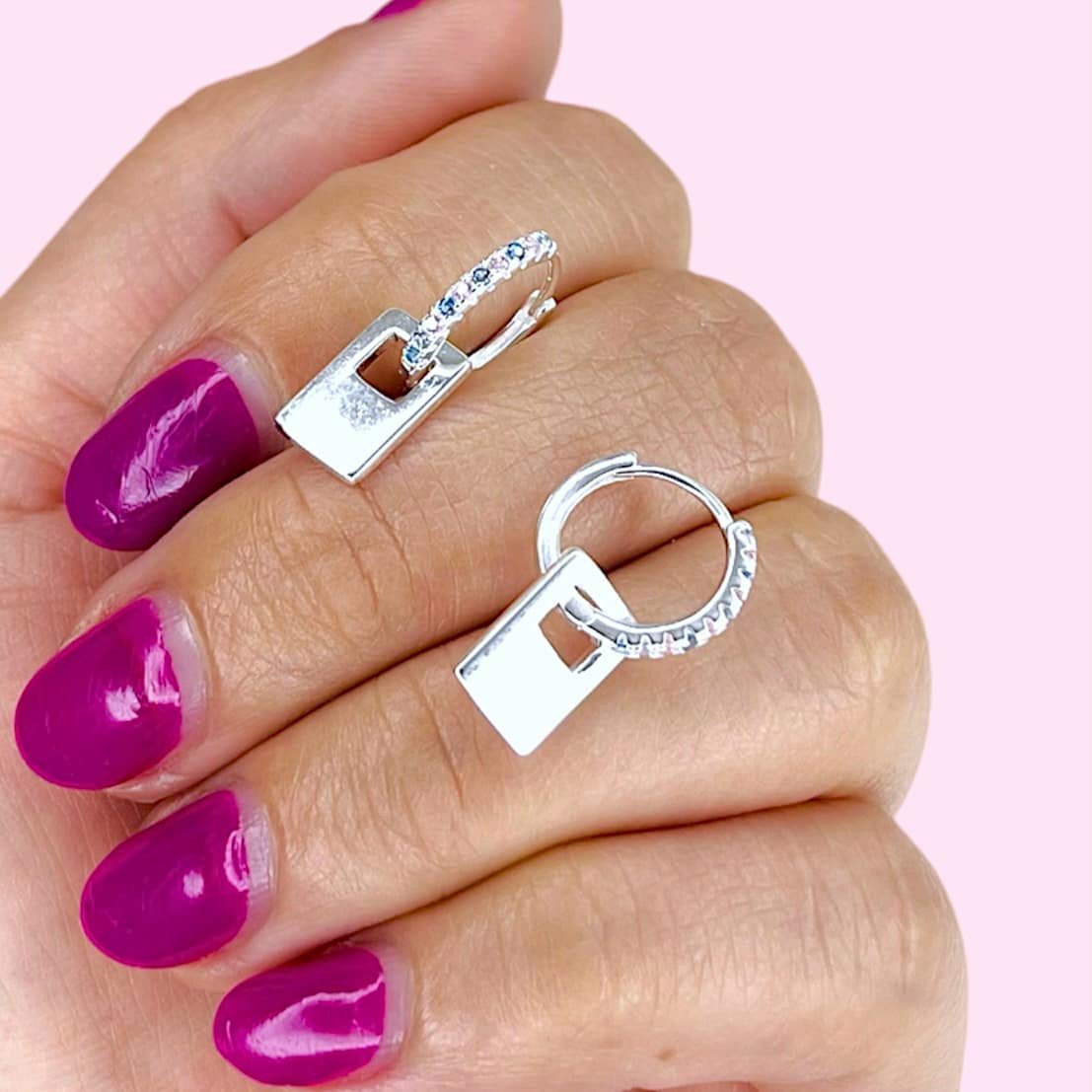 Argollas Huggies moderno cubic multicolor de Plata 925