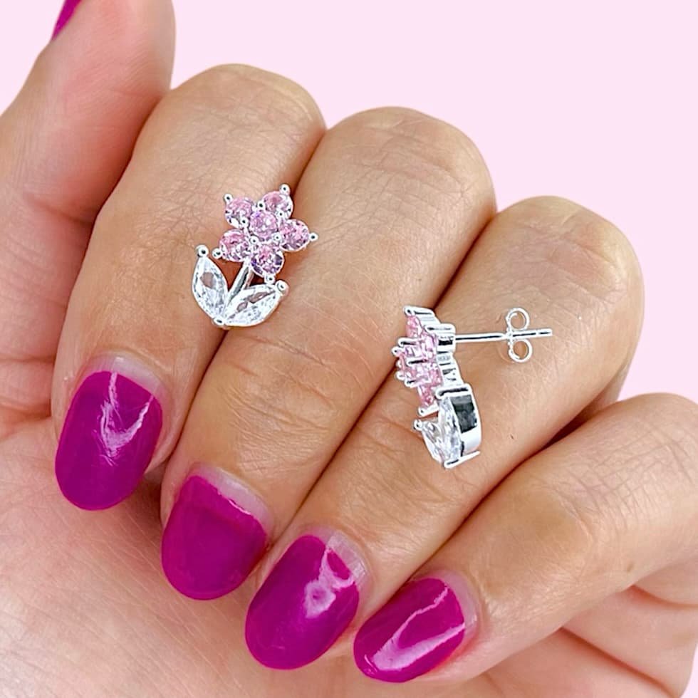 Aros Flor Primavera Cubic rosa y blanco de Plata 925