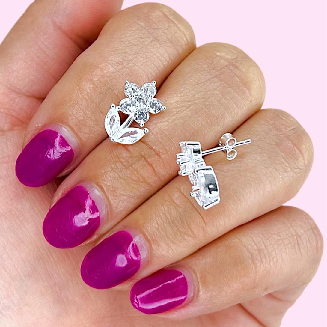 Aros Flor Primavera Cubic blanco de Plata 925