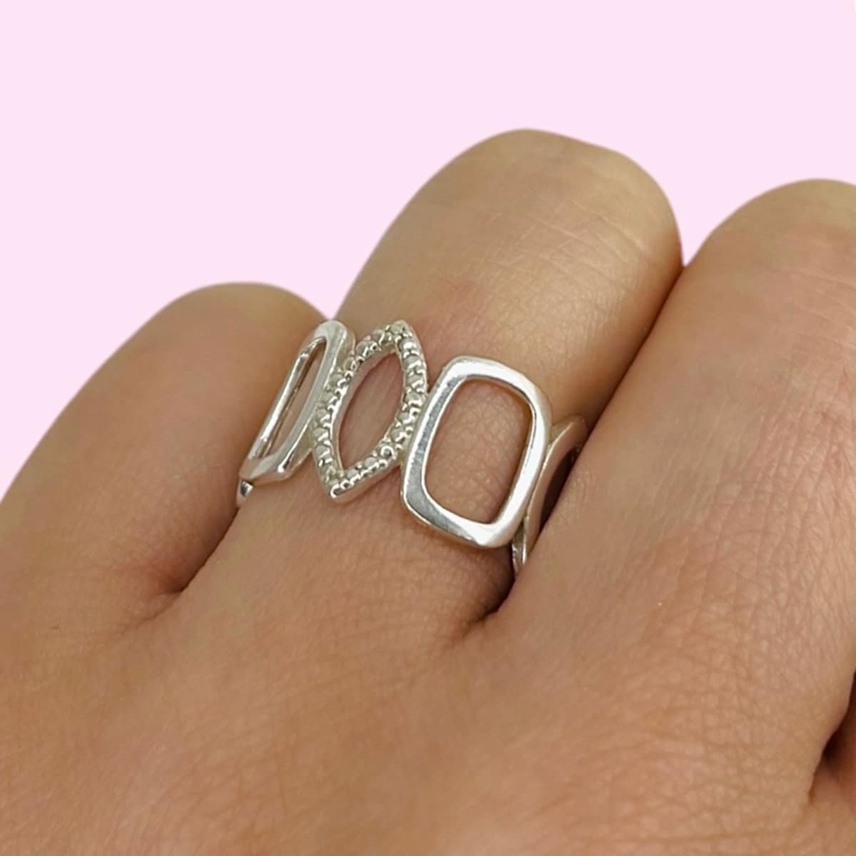 Anillo rectangulo y rombo regulable de Plata 925 (no se modifica medida)