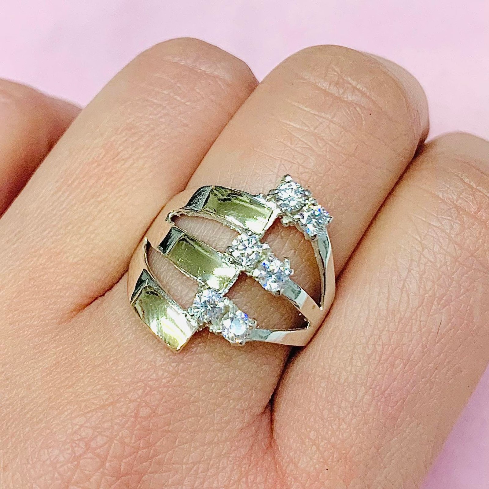 Anillo entrelazo con cubic Blanco