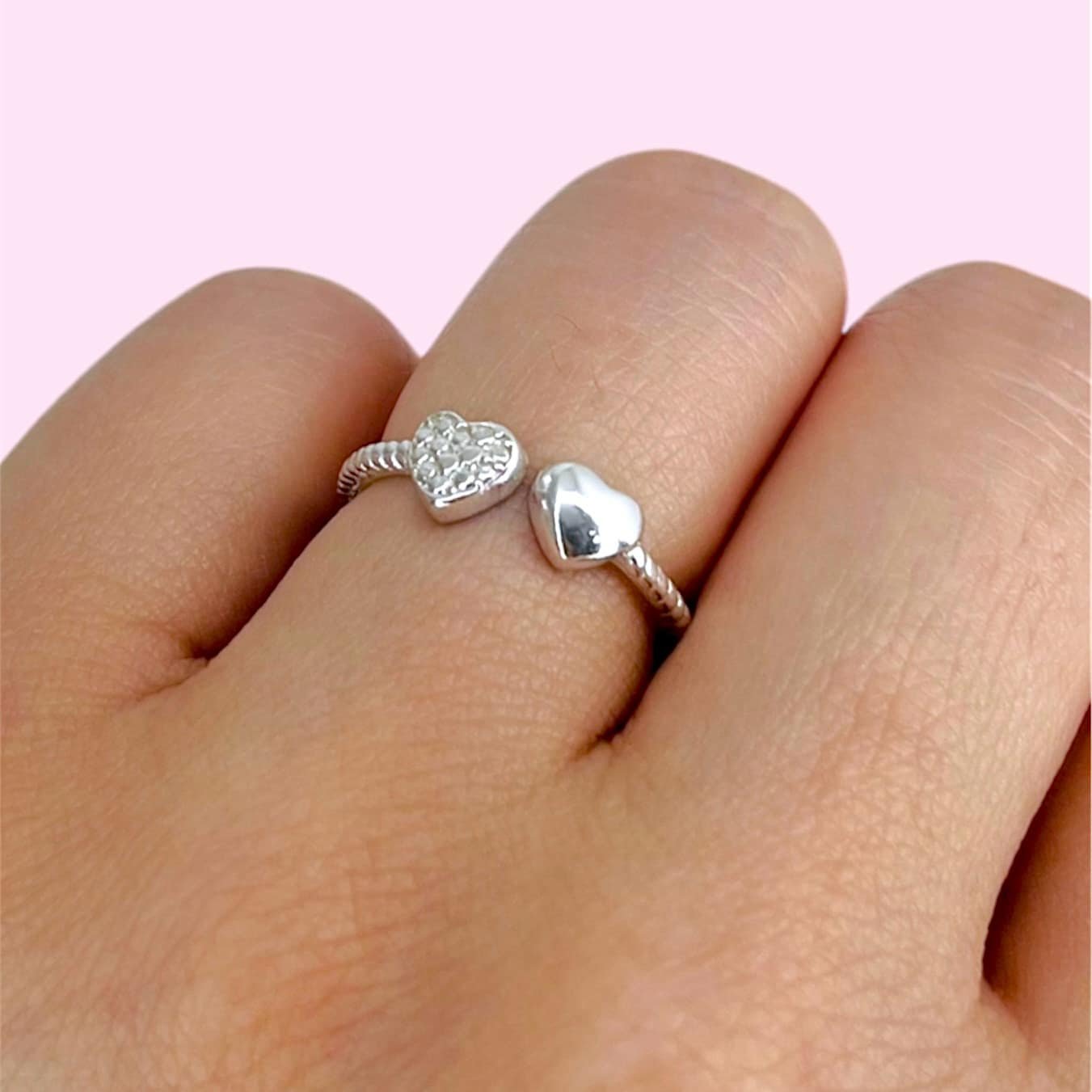 Anillo Regulable corazones Plata 925
