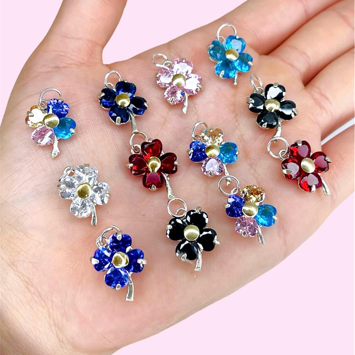 Dije Trebol 20mm de Plata y Oro x12