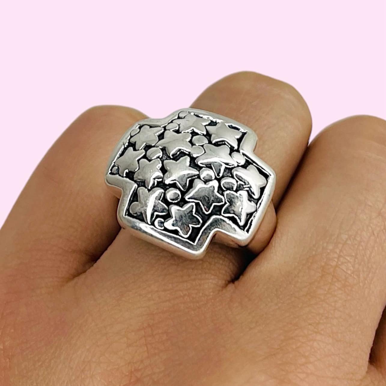 Anillo inflado cruz euilibio con estrellas Plata 925