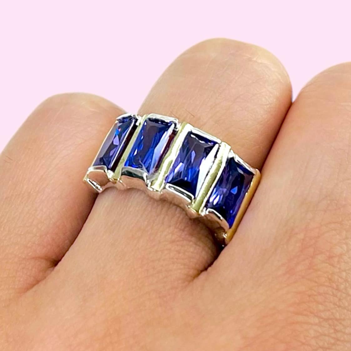 Anillo Cuatro Baguettes Violeta Plata y Oro