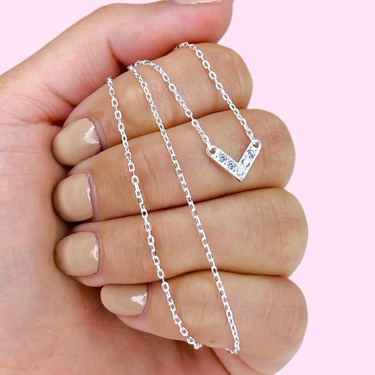 Conjunto cadena rolito lujoso en V cubic blanco Plata 925