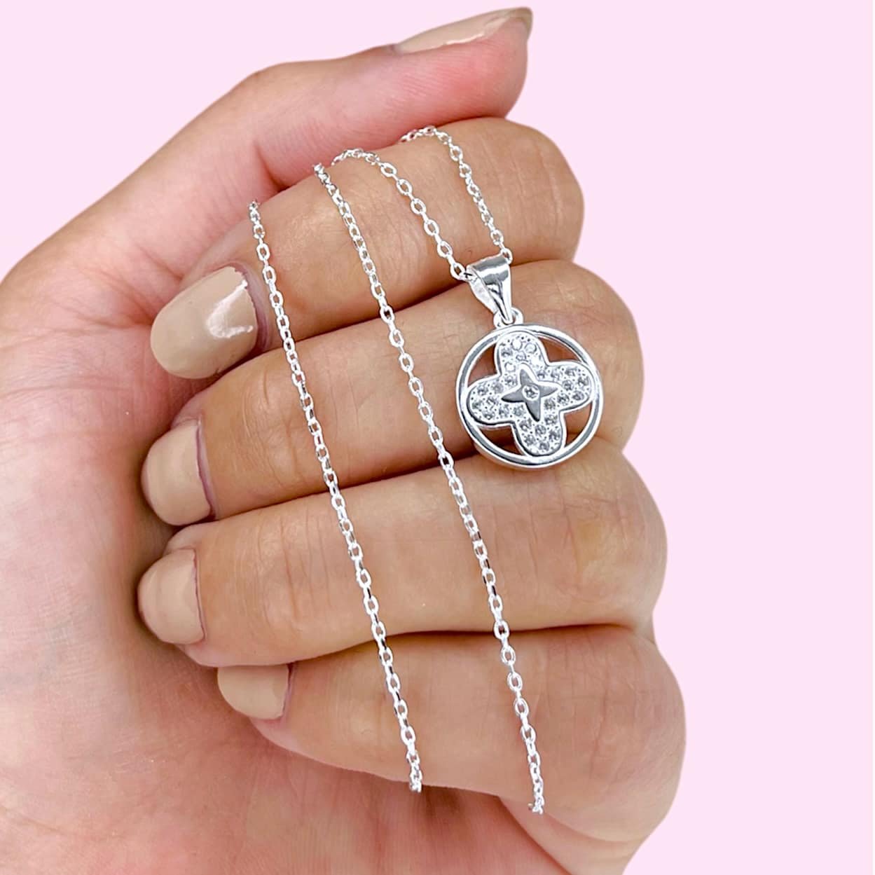 Conjunto cadena rolito dije trebol cubic blanco micropave Plata 925