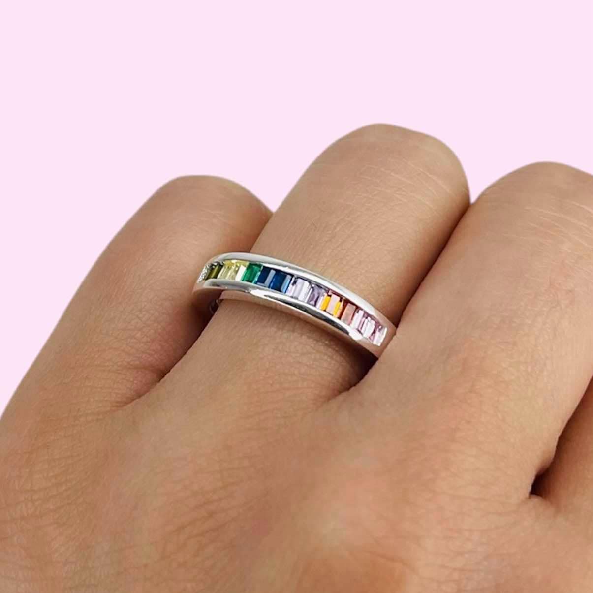 Anillo Medio sin fin baguette multicolor Plata Italiana