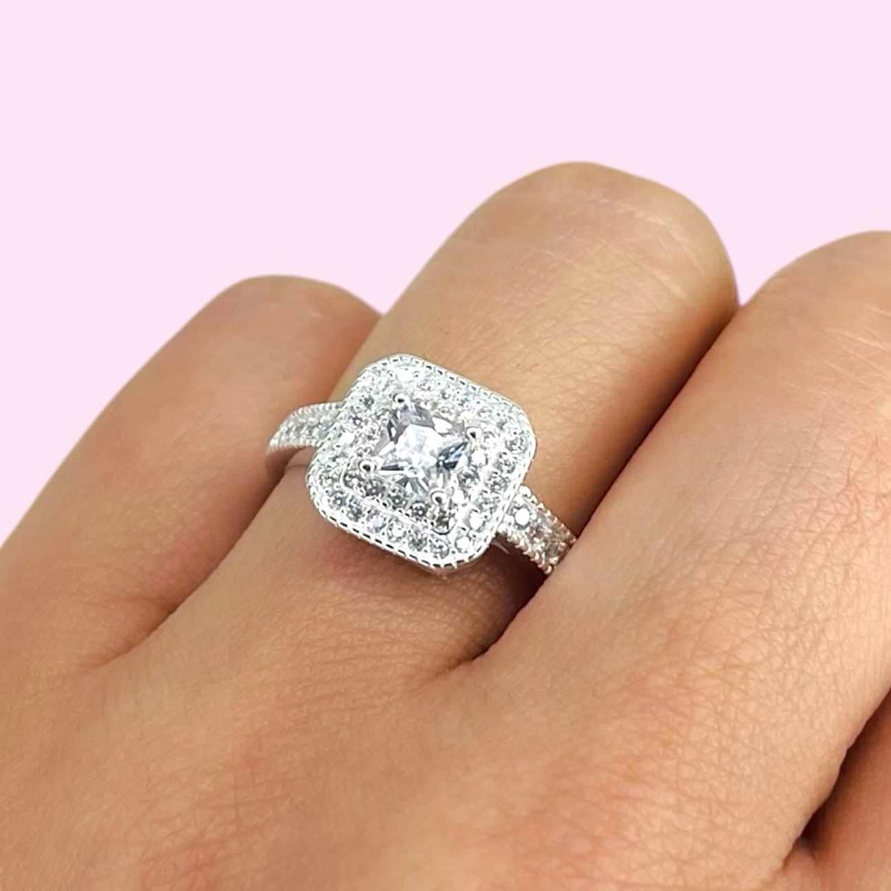 Anillo compromiso lujoso cuadrado cubic blanco Plata Italiana
